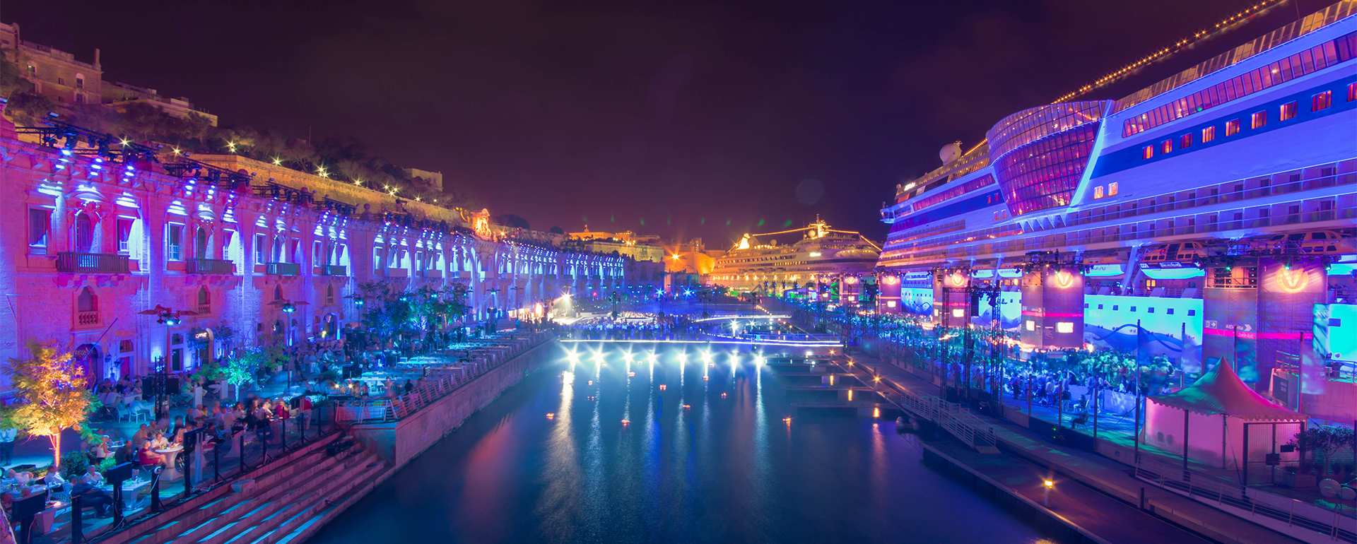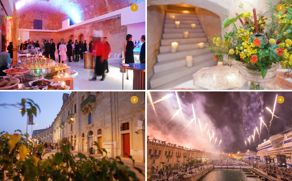 This breathtaking open-air venue offers up to 3,740 square meters of space against the Grand Harbour backdrop. With no height restrictions and easy drive-in access for large-scale staging, it is perfect for concerts or gala dinners. Its iconic colored doors and expansive layout epitomize the grand Mediterranean event experience.